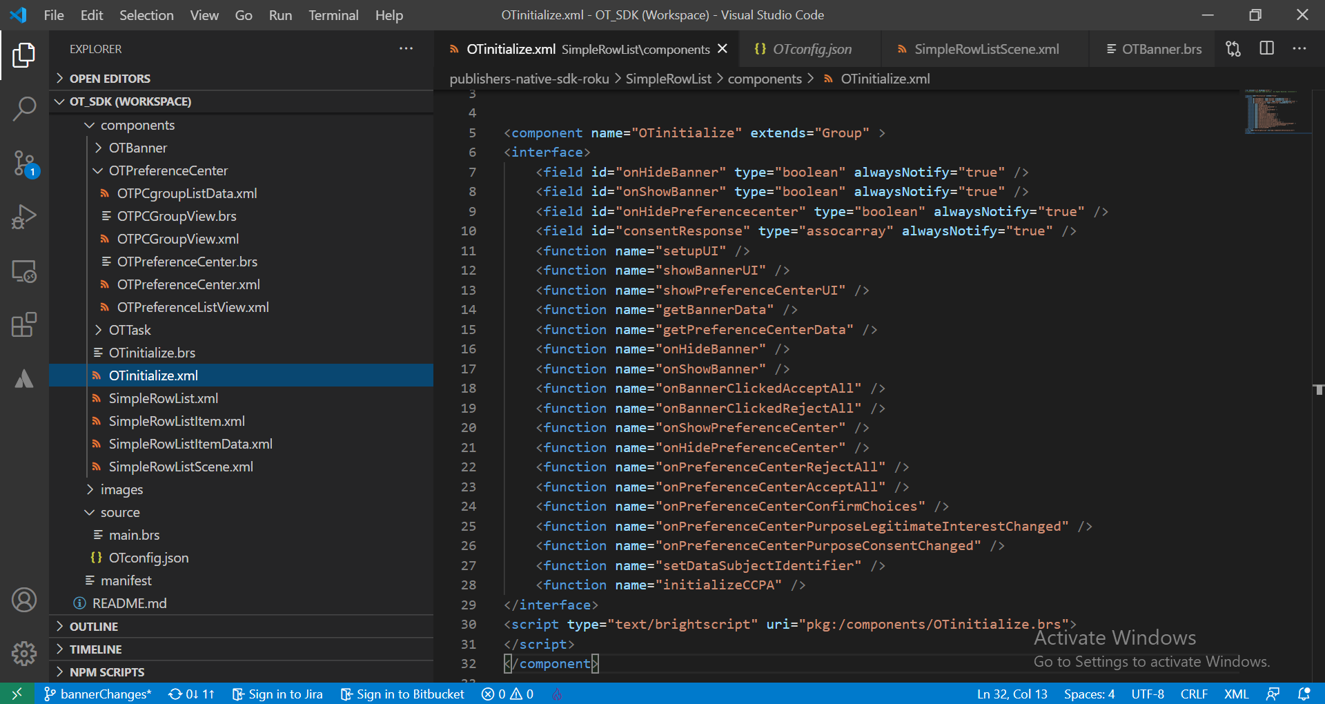 Open the scene.brs and create the OTinitialize node in the init() as m.global.OTsdk = CreateObject(“roSGNode”,”OTinitialize”)